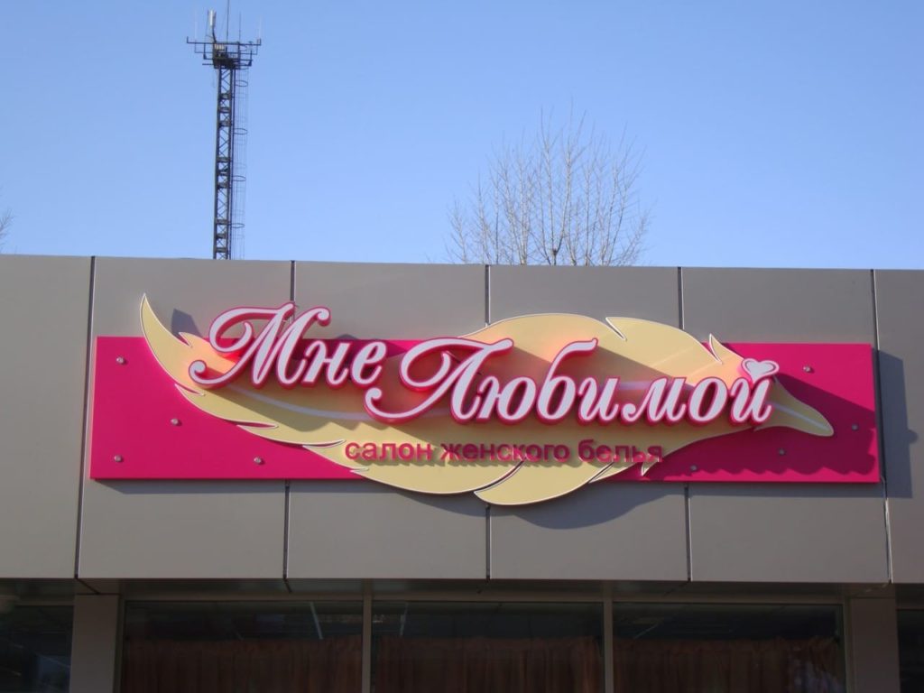 Шрифт. Он должен отличаться от шрифтов других магазинов. Пройдитесь вдоль улицы, сфотографируйте вывески соседей и покажите мастерам в фирме, где планируете заказывать. Они подберут нужный шрифт.